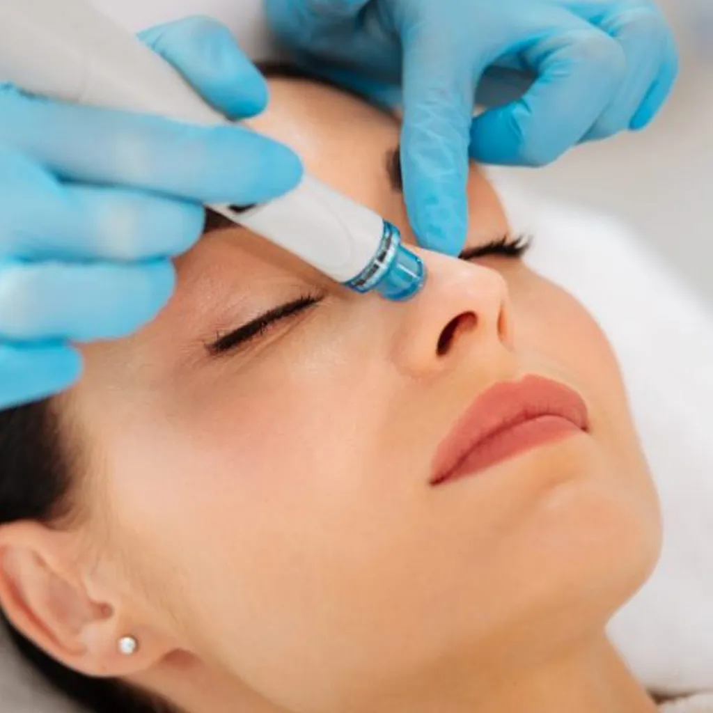 HydraFacial cleanses the skin, extracts, and hydrates skin using a revolutionary Vortex-Fusion delivery method, and the spiral shape ensures painless extractions.